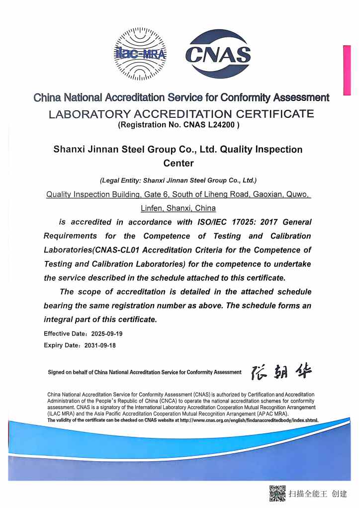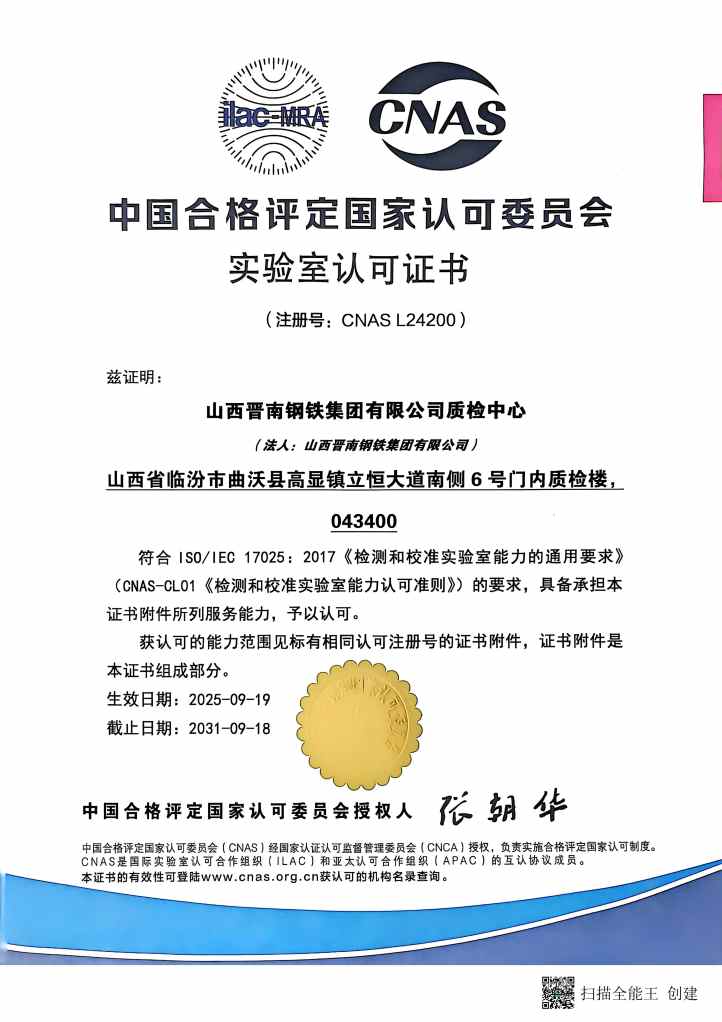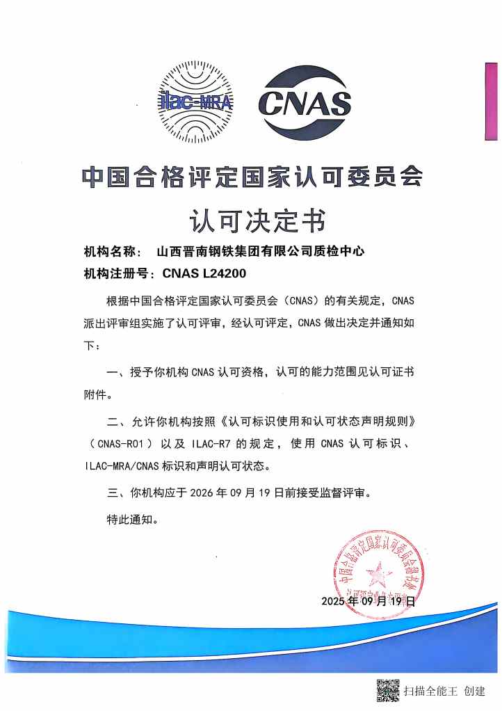 近日,集团质检中心成功通过中国合格评定国家认可委员会(CNAS)严格评审,正式获得CNAS实验室认可证书。这一权威认证不仅是对企业检测能力与管理水平的高度认可,更为中钢协“双碳最佳实践能效标杆示范”验收注入关键动能,标志着集团检测实力达到一流水平,为开拓国外市场铺平道路。