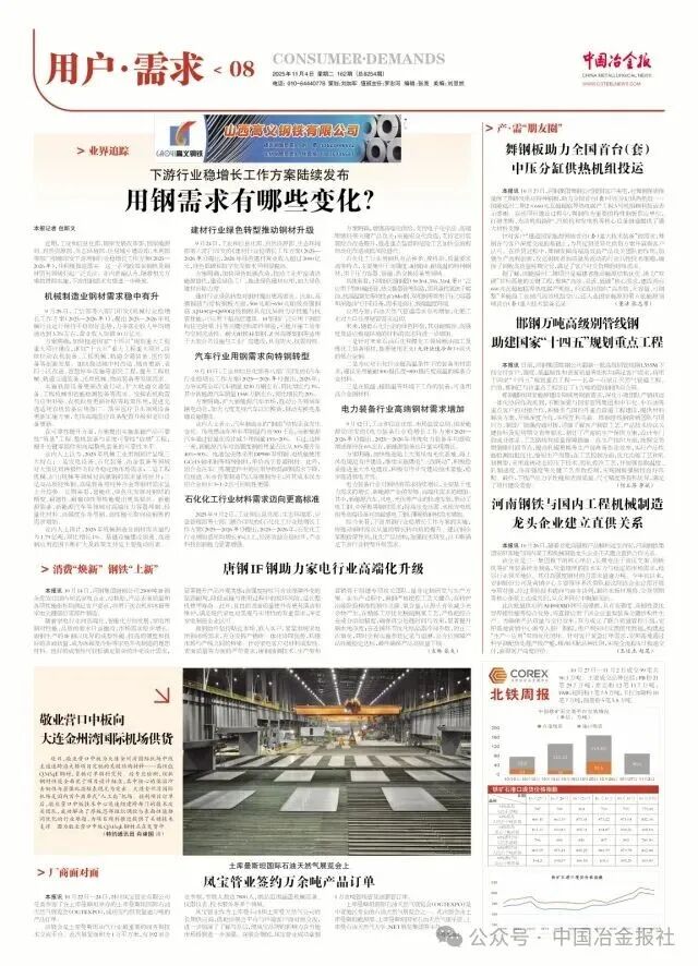 综合来看,下游用钢行业稳增长工作方案的实施,将推动钢材需求从量的增长转向质的提升。建议钢企紧跟政策导向,优化产品结构,加强技术研发,以不断满足下游行业转型升级需求。