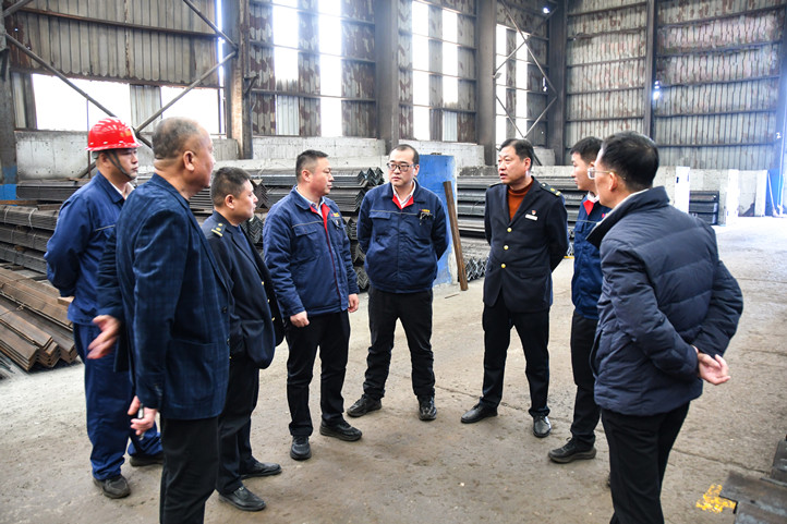 此前,侯马营业部工作人员在业务办理中发现,集团发往外地的5万吨电力角钢产品,经定尺裁剪后尺寸、重量不一,既增加装卸难度,也影响运输时效,难以满足客户需求。为快速破解这一问题,李耀民第一时间带队赴集团,张兵同步协调集团销售处、物流处负责人,三方共同前往电力角钢生产车间实地调研。