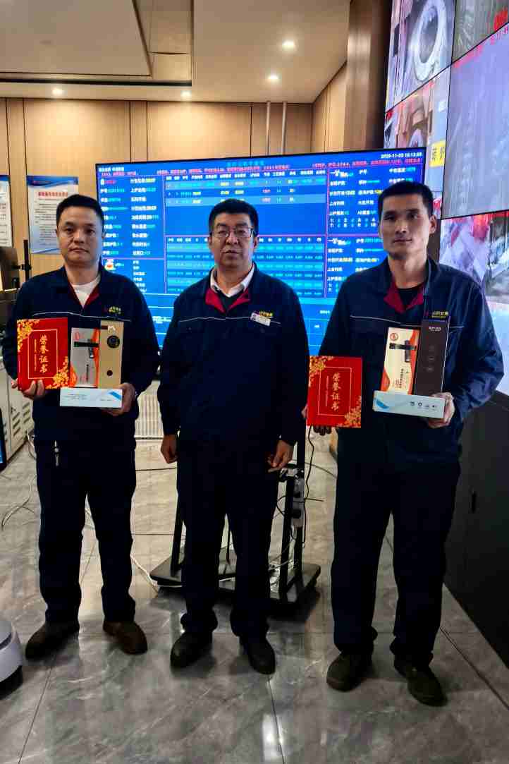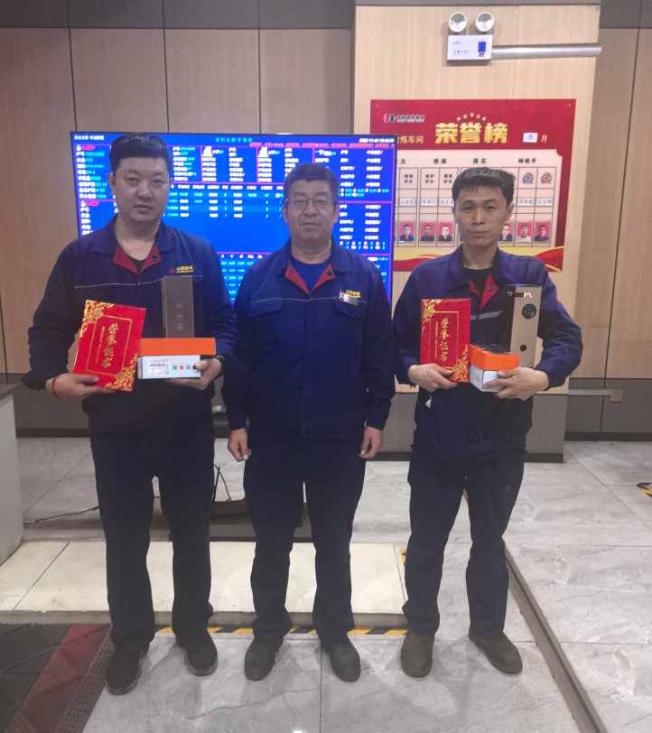 近日,炼钢厂对智能管控系统试运行期间表现突出的一线员工进行表彰。其中,一期炼钢冶炼炉长杨新亮、二期炼钢冶炼炉长李晋红凭借优异的冶炼准点率,一期炼钢连铸机长庄永彬、二期炼钢连铸机长王佩佩依托突出的浇钢准点率,从全员比拼中脱颖而出,炼钢厂为获奖人员颁发荣誉证书及对讲机、强光手电、保温水杯等奖品,以激励全员践行“精准执行、高效协同”的生产理念,助力智能管控系统深度落地。