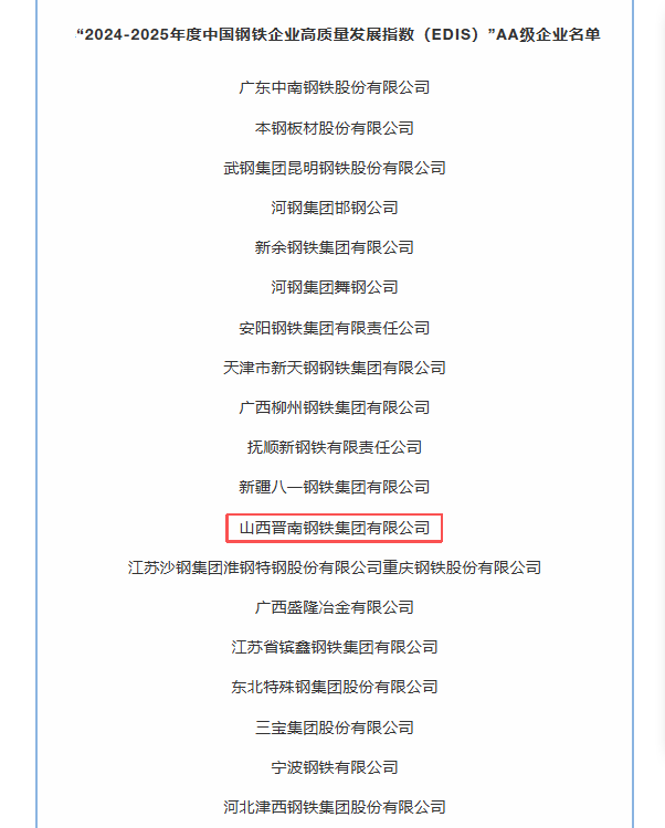 以上荣誉,既是行业对集团高质量发展成果的权威认可,更是企业迈向新征程的崭新起点。展望未来,集团将坚定不移朝着中国近零碳钢铁企业先行者的目标迈进,以科技创新为引擎,以绿色发展为路径,以精益管理为抓手,为钢铁行业高质量发展贡献晋南钢铁力量。