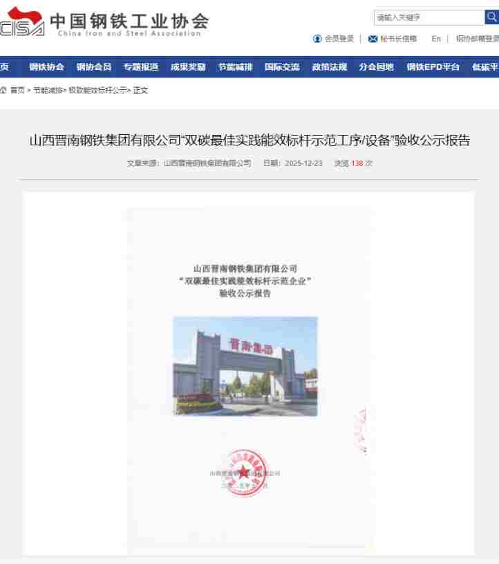 近日,中钢协公示“双碳最佳实践能效标杆示范工序/设备”验收结果,晋南钢铁炼焦工序、1号高炉、3号转炉成功通过验收,成为山西省首家完成验收的民营钢铁企业,标志着集团在绿色低碳转型道路上迈出关键步伐。