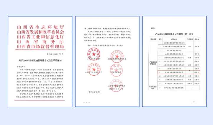 2025年10月21日,山西省生态环境厅公布“产品碳足迹管理体系试点名单”,集团成功入围,成为全省首批入选该试点的企业。这标志着集团在碳排放管理体系建设、低碳技术应用及绿色发展模式上已走在全省前列,为企业深化管理创新、增强市场竞争力、提升品牌形象注入强劲动力。