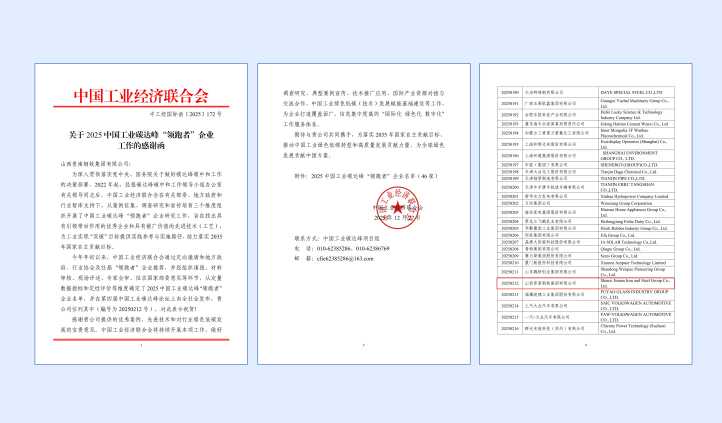 2025年12月27日,中国工业经济联合会第四届中国工业碳达峰论坛在山东青岛举行,集团凭借在绿色低碳转型领域的扎实实践与显著成效,成功获评2025中国工业碳达峰“领跑者”企业。这一荣誉不仅是对企业绿色发展成果的权威认可,更凸显出其在长流程钢铁行业低碳转型进程中的标杆引领价值。