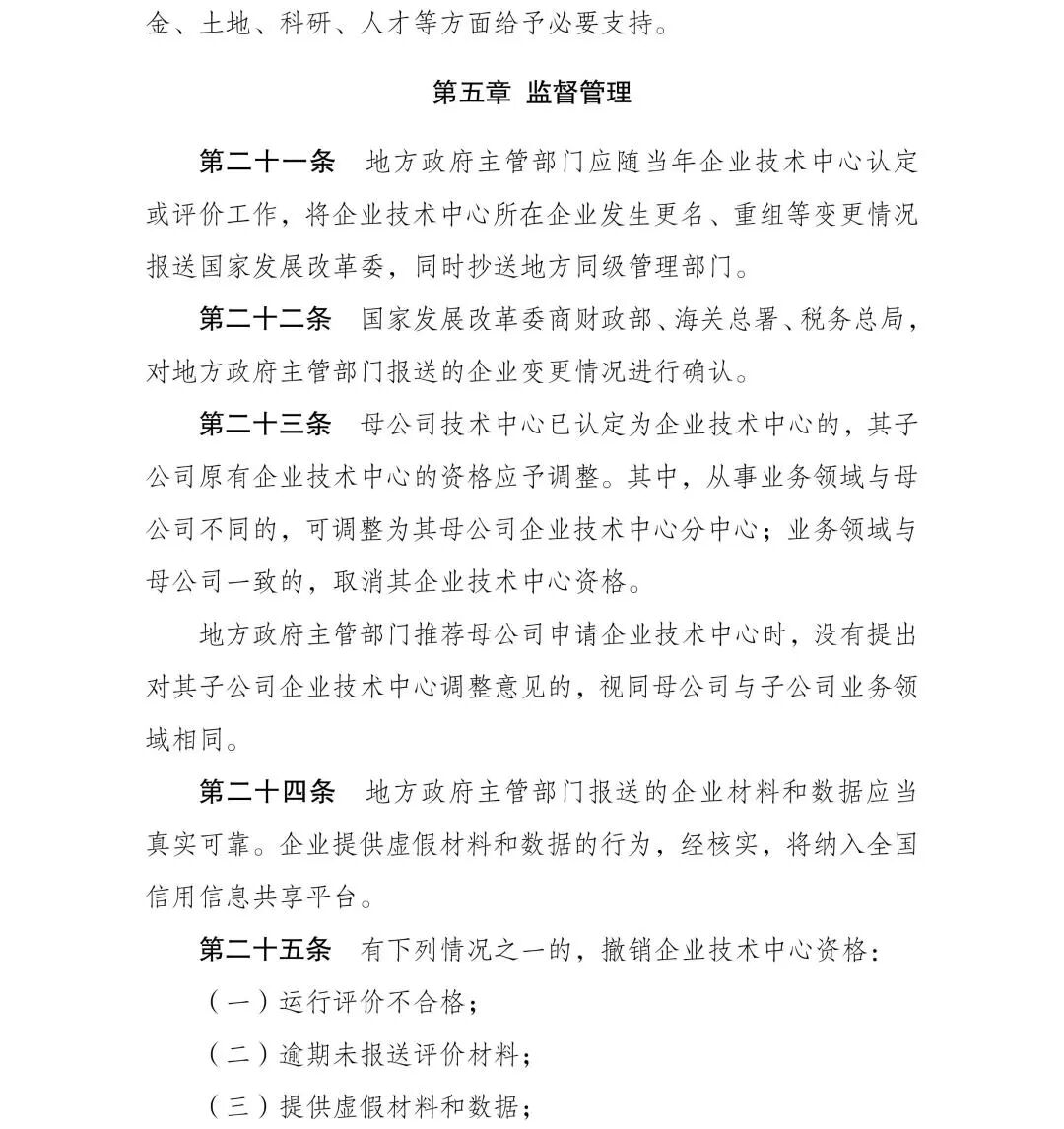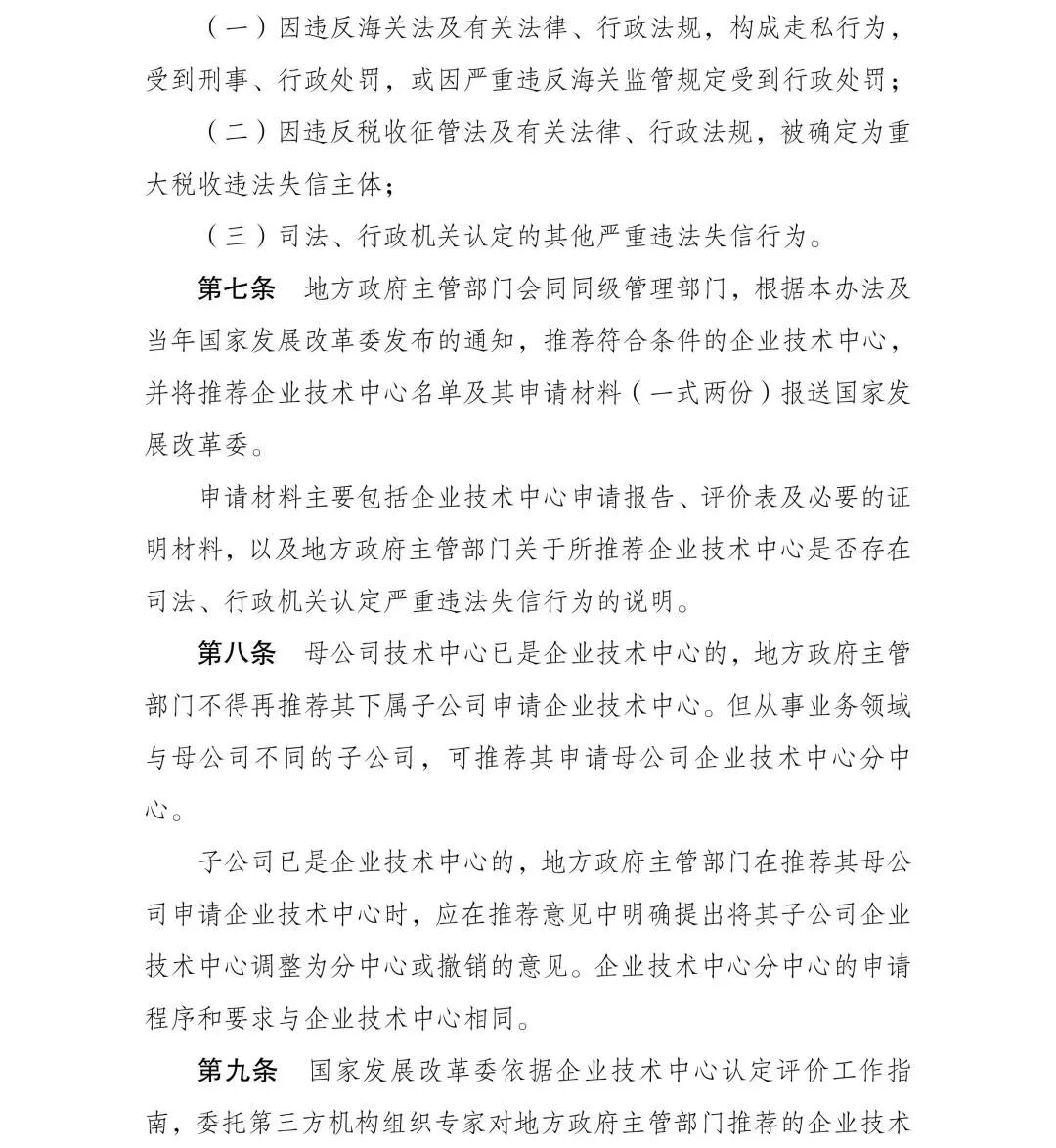1月23日,国家发改委印发《企业技术中心认定管理办法》,原文如下: